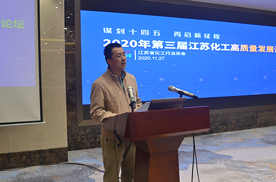 江蘇省工業和信息化廳材料工業處調研員馬勇良作題為“江蘇化工行業產業政策與監管重點與方向”的報告