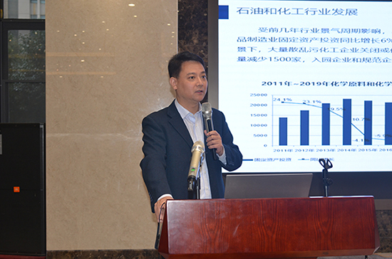 江蘇省生態環境廳市縣工作處調研員賀震作題為“江蘇化工行業環保監管重點與方向”的報告