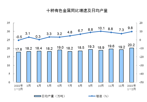 分產品看,1—2月份,620種產品中有269種產品產量同比增長。鋼材20623萬噸,同比增長3.6%;水泥19855萬噸,下降0.6%;十種有色金屬1192萬噸,增長9.8%;乙烯508萬噸,下降1.7%;汽車365.3萬輛,下降14.0%,其中新能源汽車97.0萬輛,增長16.3%;發電量13497億千瓦時,增長0.7%;原油加工量11607萬噸,增長3.3%。