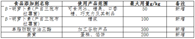 2023年8月30日,巴西國家衛(wèi)生監(jiān)督局(ANVISA)發(fā)布1198號公共咨詢文件,擬修訂食品添加劑使用標(biāo)準(zhǔn),具體為新增部分食品中β-胡蘿卜素(產(chǎn)自三孢布拉霉菌)等多種食品添加劑的使用條件,具體內(nèi)容部分見下表。該修訂意見反饋期截至2023年11月7日。