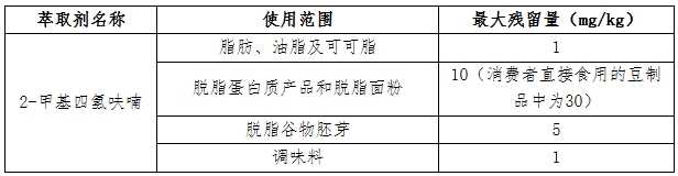 2023年11月16日,愛沙尼亞農業部發布23-1501/01號文件,擬修訂食品中允許使用的萃取劑及最大使用量法規。意見征集反饋期2023年11月30日。主要內容為允許2-甲基四氫呋喃在油脂等產品生產中作為萃取劑使用,其在食品中最大殘留量如下表所示。