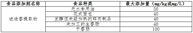 2024年5月24日,澳大利亞聯(lián)邦公報發(fā)布F2024L00577號公告,修訂食品添加劑使用標(biāo)準(zhǔn)。具體為擴大迷迭香提取物的使用范圍,并規(guī)定了使用條件,具體內(nèi)容見下表。該公告自發(fā)布之日起生效。