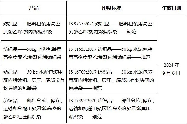 近日,印度化學(xué)與石化部在與印度標(biāo)準(zhǔn)局(BIS)協(xié)商后發(fā)布公告,決定推遲4類聚合物產(chǎn)品質(zhì)量控制令的實施日期。相關(guān)質(zhì)量控制令最初于2023年12月6日發(fā)布,原計劃于2024年6月3日生效。下表所示這4類聚合物產(chǎn)品的生效日期和相應(yīng)標(biāo)準(zhǔn)要求。