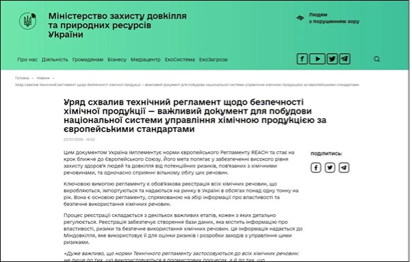 烏克蘭政府正式采納了一項重要的化學品安全技術法規——烏克蘭版REACH。