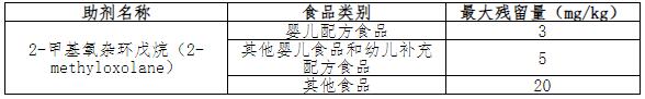 2024年11月8日,澳新食品標準局(FSANZ)發(fā)布315-24號通告,批準2-甲基氧雜環(huán)戊烷(2-methyloxolane)作為加工助劑(具體用途為萃取溶劑)在食品中使用(即A1260號提案),同時規(guī)定了該物質(zhì)在各類食品中的最大殘留量,具體見下表。該通告將在澳大利亞政府公報發(fā)布后正式生效。