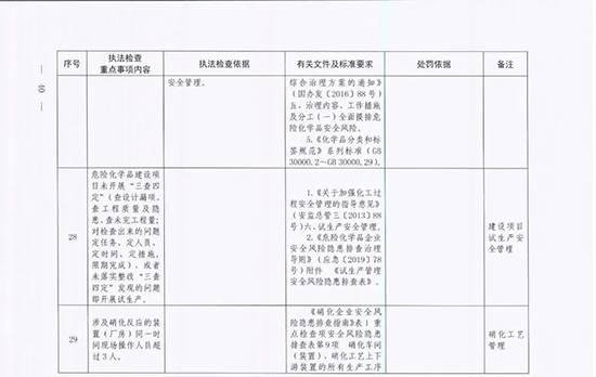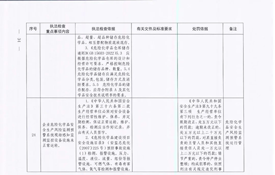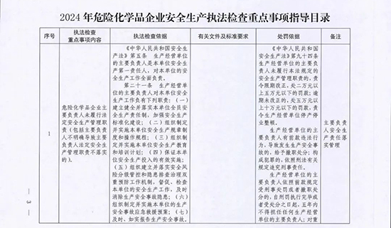 危險化學品企業安全生產執法檢查重點事項指導目錄>的通知(應急廳〔2024〕11號)。